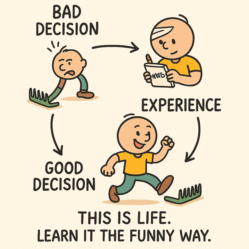 Life has a peculiar system: good decisions often come from experience… but what is experience? Oh, that’s generously gifted to us via bad choices. It’s like the universe runs a backwards loyalty program. “Oops! Here’s a little wisdom for next time.”